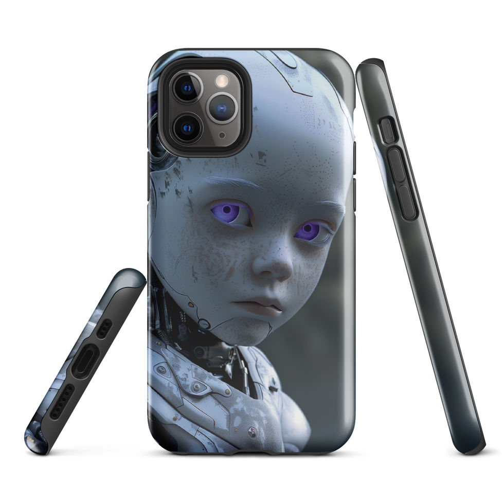 Let your iPhone shine through while embracing the awe-inspiring design of "Neon Sentinel"! This childlike humanoid, with its striking violet optics and exposed, futuristic mechanics, creates the perfect combination of technology and innocence. The transparent design complements your iPhone�s sleek aesthetic, offering a unique touch of sci-fi charm. ?????