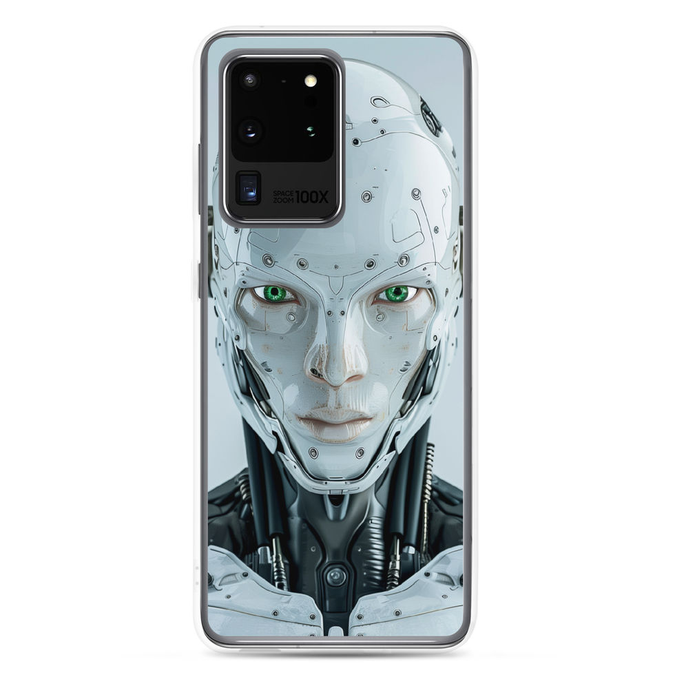 Enhance your Samsung�s style while showcasing the cybernetic intelligence of "Neon Sentinel"! This futuristic AI humanoid features a flawless white exoskeleton, hyper-detailed plating, and glowing green eyes that add depth and realism to its advanced design. The intricate mechanical components blend seamlessly with synthetic textures, creating a striking representation of artificial intelligence at its peak. The transparent case allows your Samsung�s original color to complement this sci-fi marvel, offering a refined fusion of modern minimalism and cybernetic brilliance. ??????