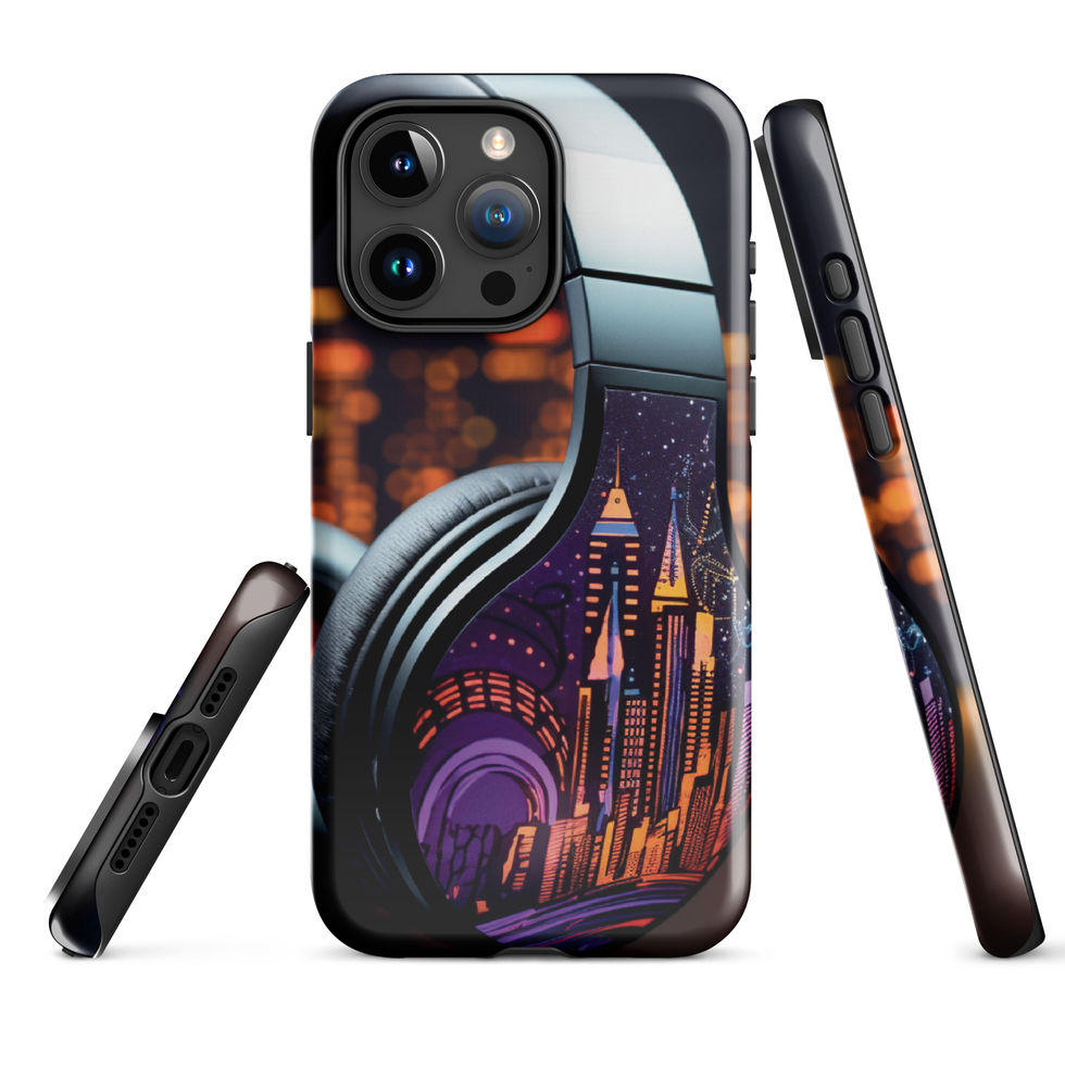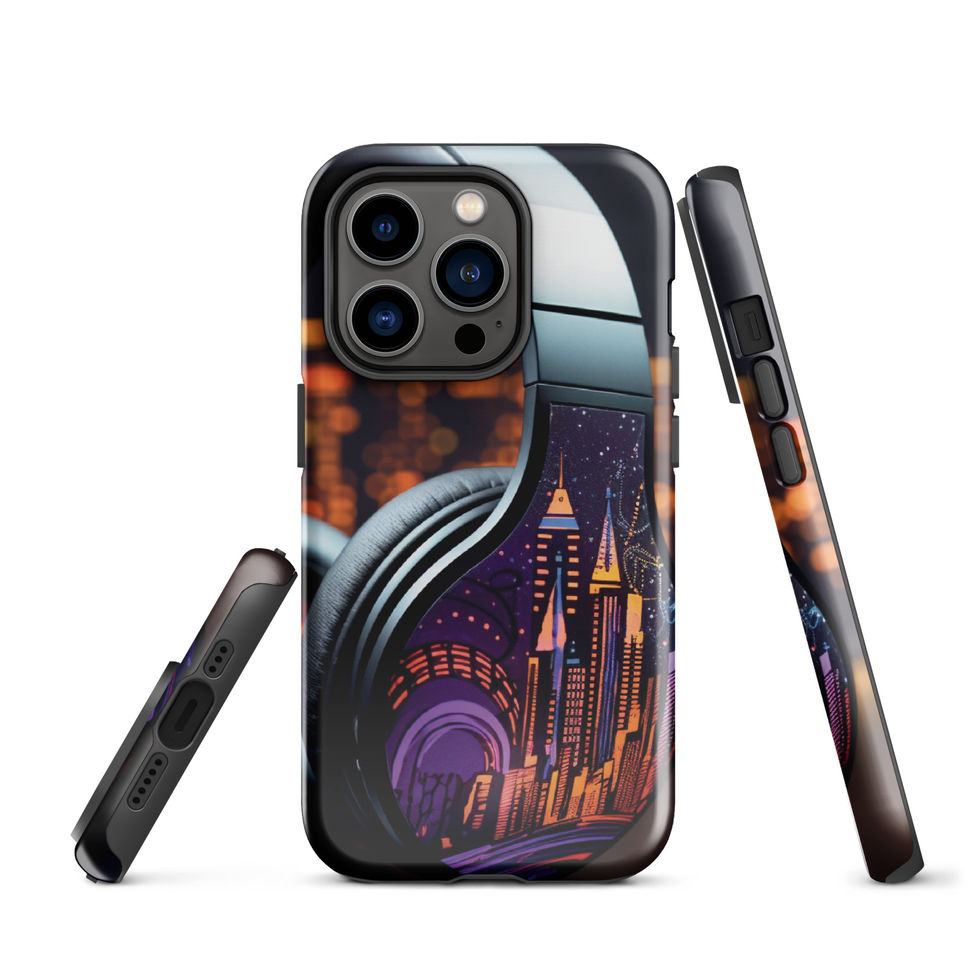 "Neon Skyline" Tough Case for iPhone® 🌆🎧📱