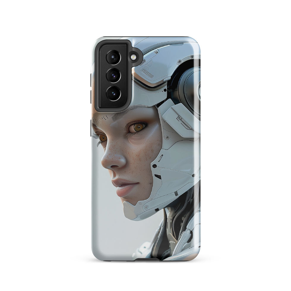 Fortify your Samsung with "Neural Voyager", a cybernetic guardian designed for intelligence and resilience. This futuristic AI humanoid seamlessly blends an ultra-sleek white exoskeleton with delicate human-like features, exuding both grace and strength. Her finely tuned plating, intricate cybernetic details, and luminous amber eyes create a striking depiction of advanced technology. Designed with dual-layer protection, this tough case ensures your Samsung remains as durable as the AI it represents. ??????