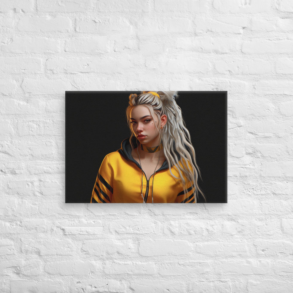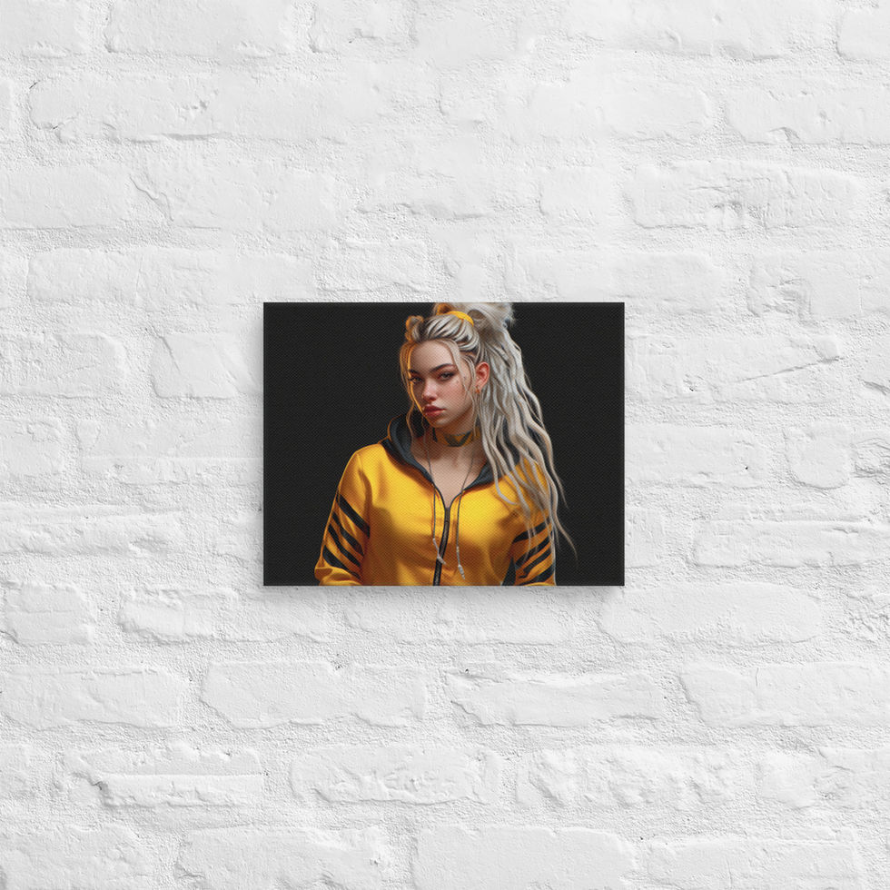 Transform your space with Rebel Radiance, a stunning canvas print that blends fashion, confidence, and artistic flair. This high-impact portrait features a striking figure in a vibrant yellow and black hoodie, exuding urban energy and individuality. Printed on premium canvas, this artwork adds a bold and dynamic statement to any room.