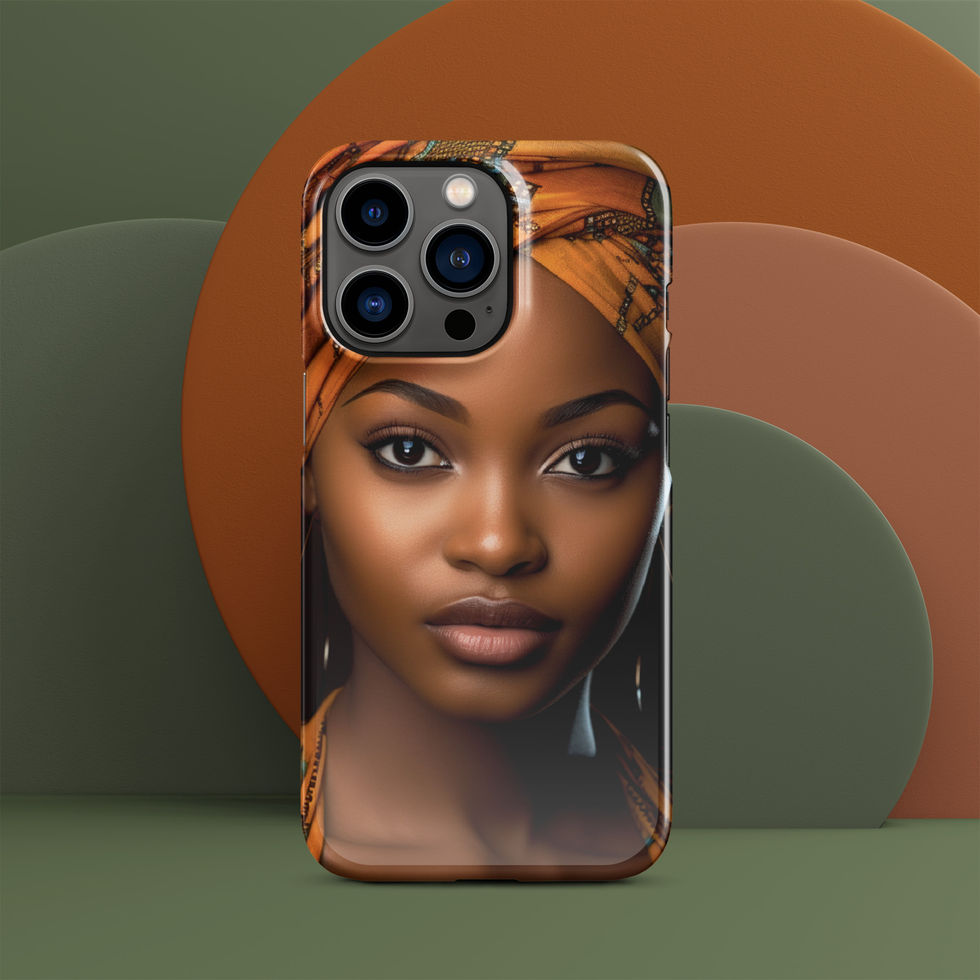 Celebrate beauty and heritage with the Regal Essence Snap Case. This stunning artwork captures a poised woman adorned in a vibrant, intricately patterned headwrap, her gaze exuding confidence and grace. The warm golden tones and deep, rich hues make this case a perfect blend of tradition and contemporary elegance. 🎨✨