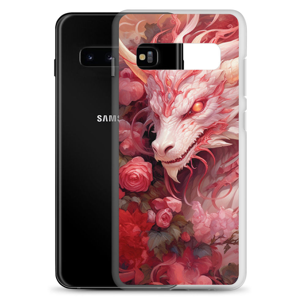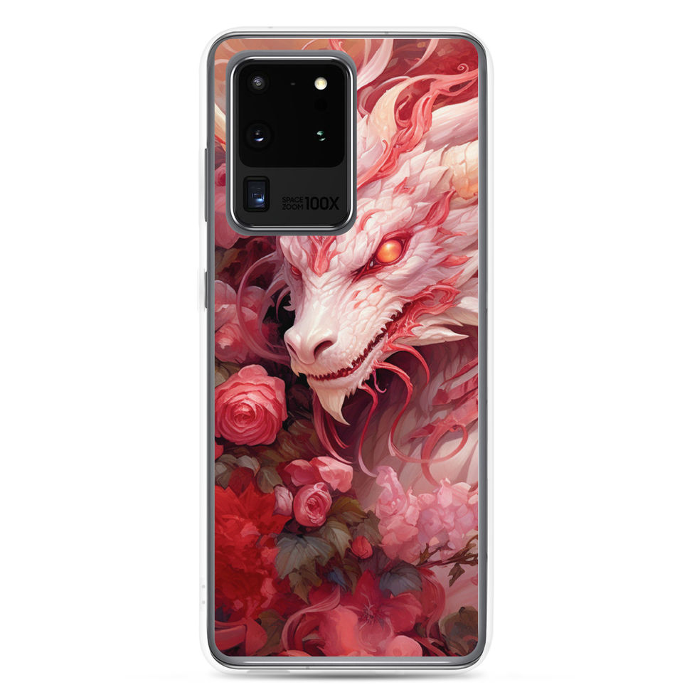 Celebrate the enchanting balance of strength and beauty with the "Rosethorn Guardian" Clear Case. This radiant artwork captures a majestic white dragon, its fiery red mane blending seamlessly into a cascade of roses. Surrounded by petals drifting in a soft golden glow, this case exudes an aura of power and serenity. A design that lets your Samsung’s natural elegance shine while adding a touch of mythical charm. 🌸✨