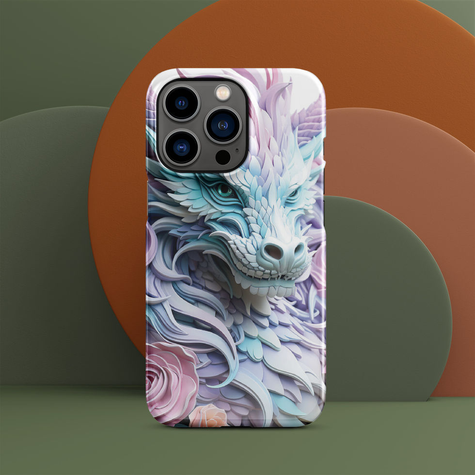 Step into a world of ethereal beauty with the "Serene Blossom Dragon" Snap Case. This stunning artwork features a celestial dragon adorned with layered pastel scales in soft lavender, icy blue, and delicate pink. Flowing, feather-like tendrils cascade from its mane, blending seamlessly with the intricate roses and magnolia blossoms that frame its regal form. With piercing aqua eyes and ornate details, this dragon embodies grace, strength, and an otherworldly charm. A masterpiece for those who appreciate mythical elegance. ✨🌿