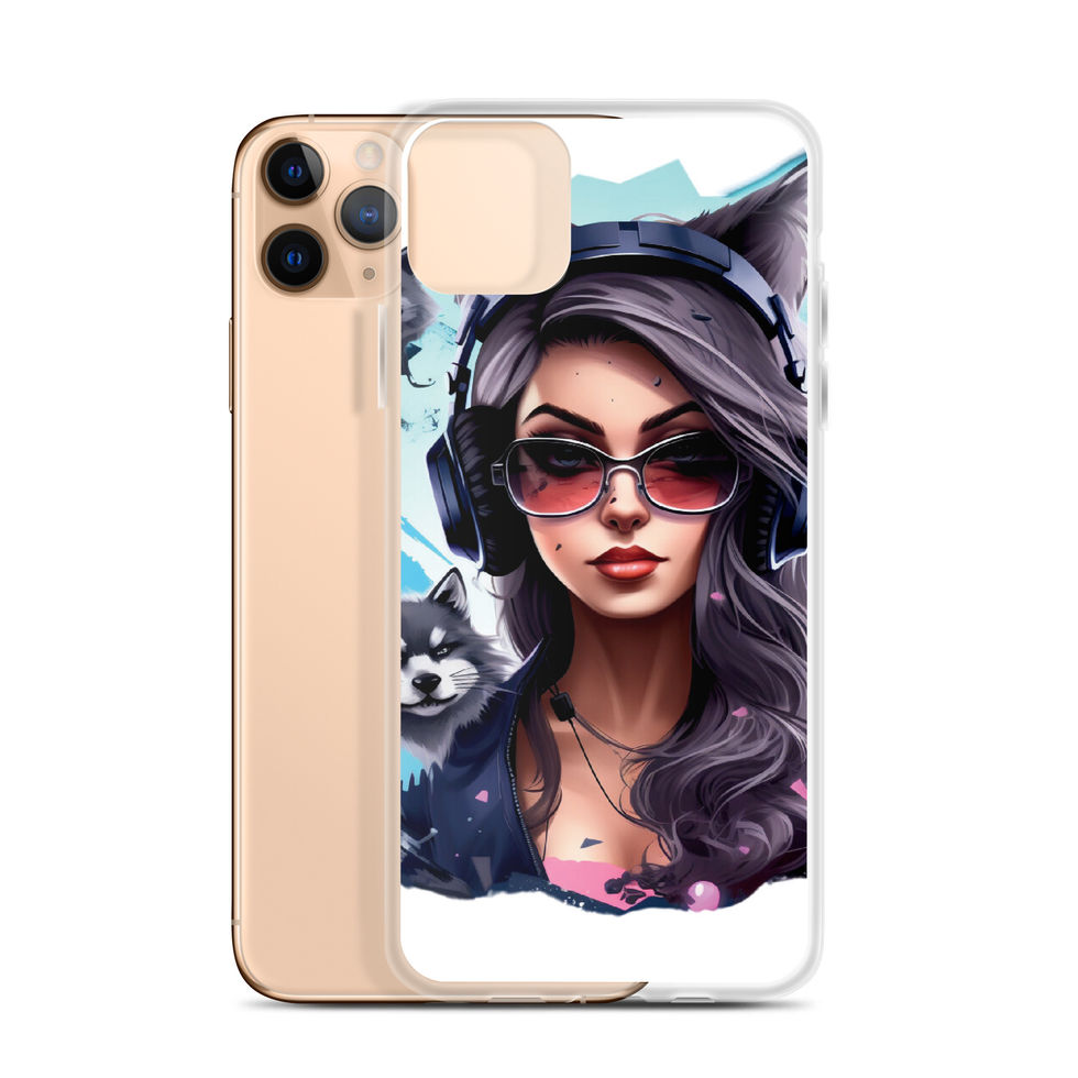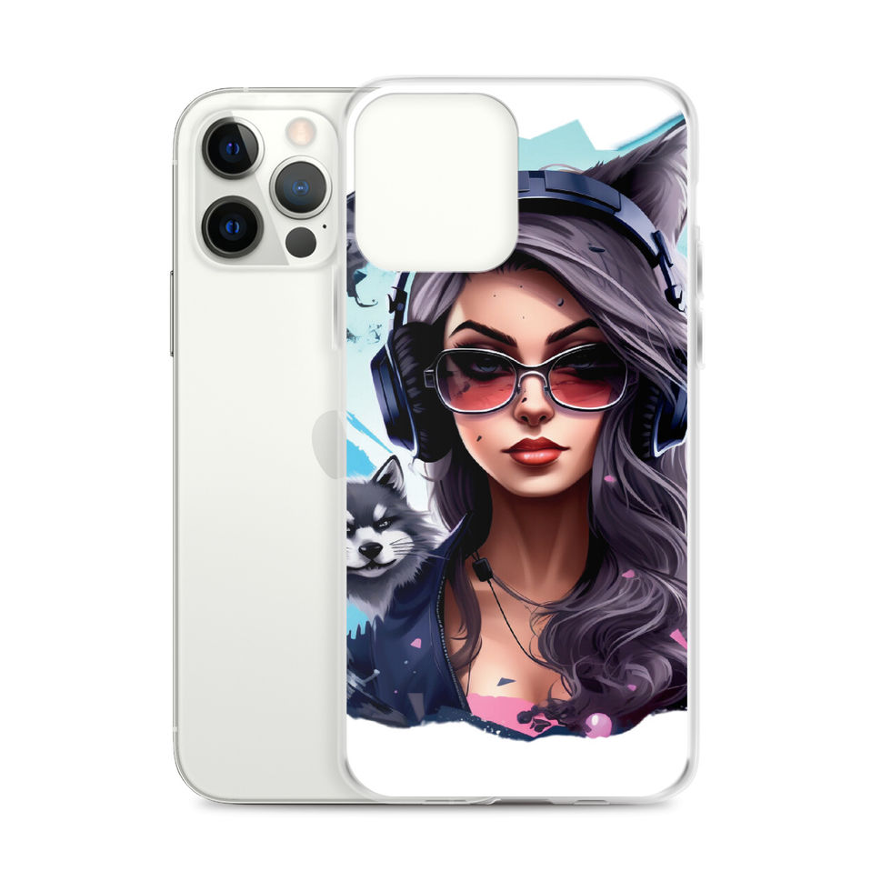 Let your iPhone shine while embracing a bold and striking aesthetic with the "Shadow Huntress" Clear Case! This dynamic illustration features a confident woman with wolf-like ears, sleek sunglasses, and futuristic headphones. Her silver hair flows with energy as she is surrounded by fierce wolves, symbolizing strength, intelligence, and independence. The transparent backing ensures your iPhone’s natural elegance remains visible while showcasing this captivating artwork. 🎧🐺🔥