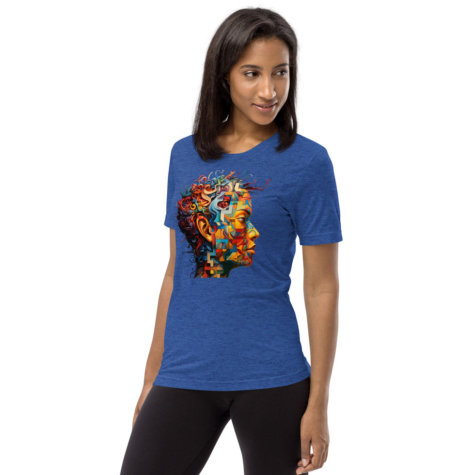 🎨 Design Vibes: Celebrate vibrant creativity with this dynamic and intricate design! Featuring a colourful profile of a face intertwined with flowing abstract shapes and geometric patterns, this tee symbolises the beauty of complexity and individuality. The rich, deep background enhances the vivid colours and textures, making it a bold statement piece. 🌈✨