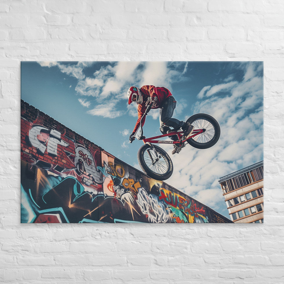 Kickflip your walls with the "Skyline BMX Stunt" canvas. Order now and bring the adrenaline of freestyle BMX into your home! 🏆🔥