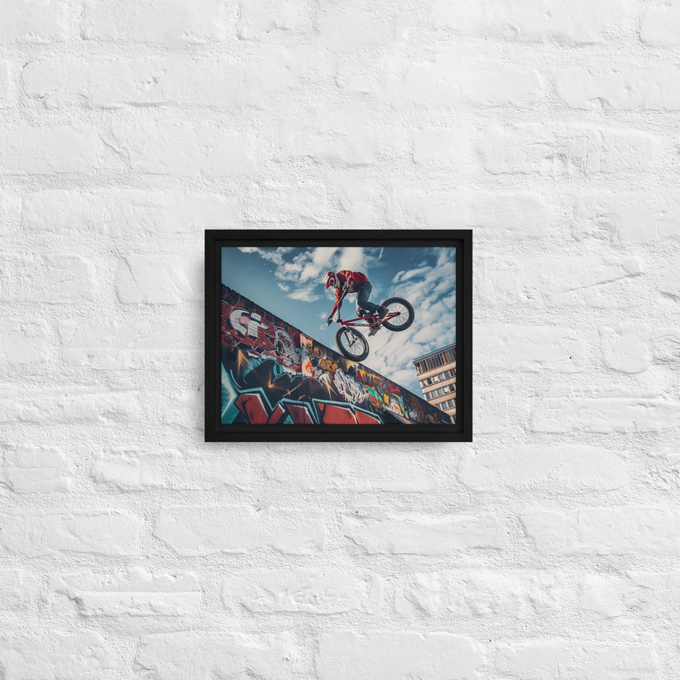 "Skyline BMX Stunt" Framed Canvas 🚴♂️🖼️