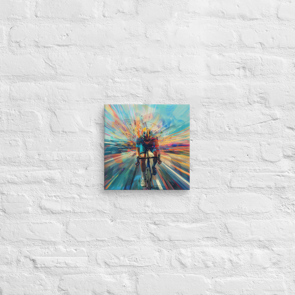 Ignite your walls with the energy and motion of the "Speed Racer Vibrance" canvas. Featuring a cyclist powering through a whirlwind of vibrant colours, this stunning artwork brings a dynamic and modern flair to any space. 🌈⚡