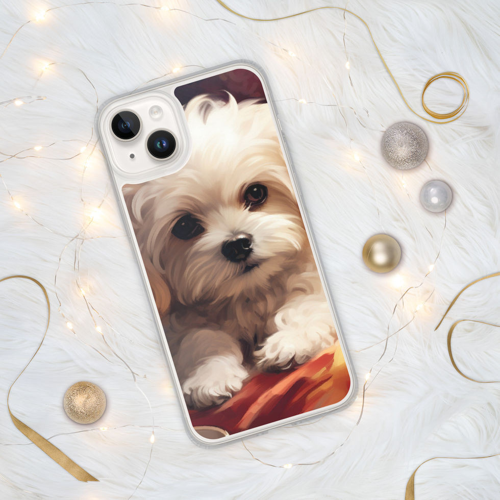 Let your iPhone shine while embracing warmth and relaxation with the "Storytime Pup" Clear Case! Featuring a fluffy, cream-coloured pup curled up in a nest of soft, patterned blankets, its gentle expression and soft, feathery fur make this design a heart-melting addition to any phone. The transparent background allows your device’s natural beauty to shine through while adding a touch of coziness. 🐶📖☕