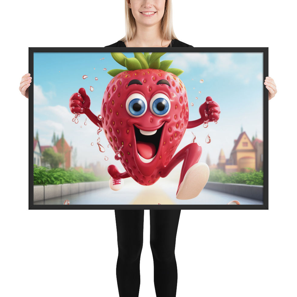 "Strawberry Sprint" Framed Poster 🎨🖼️