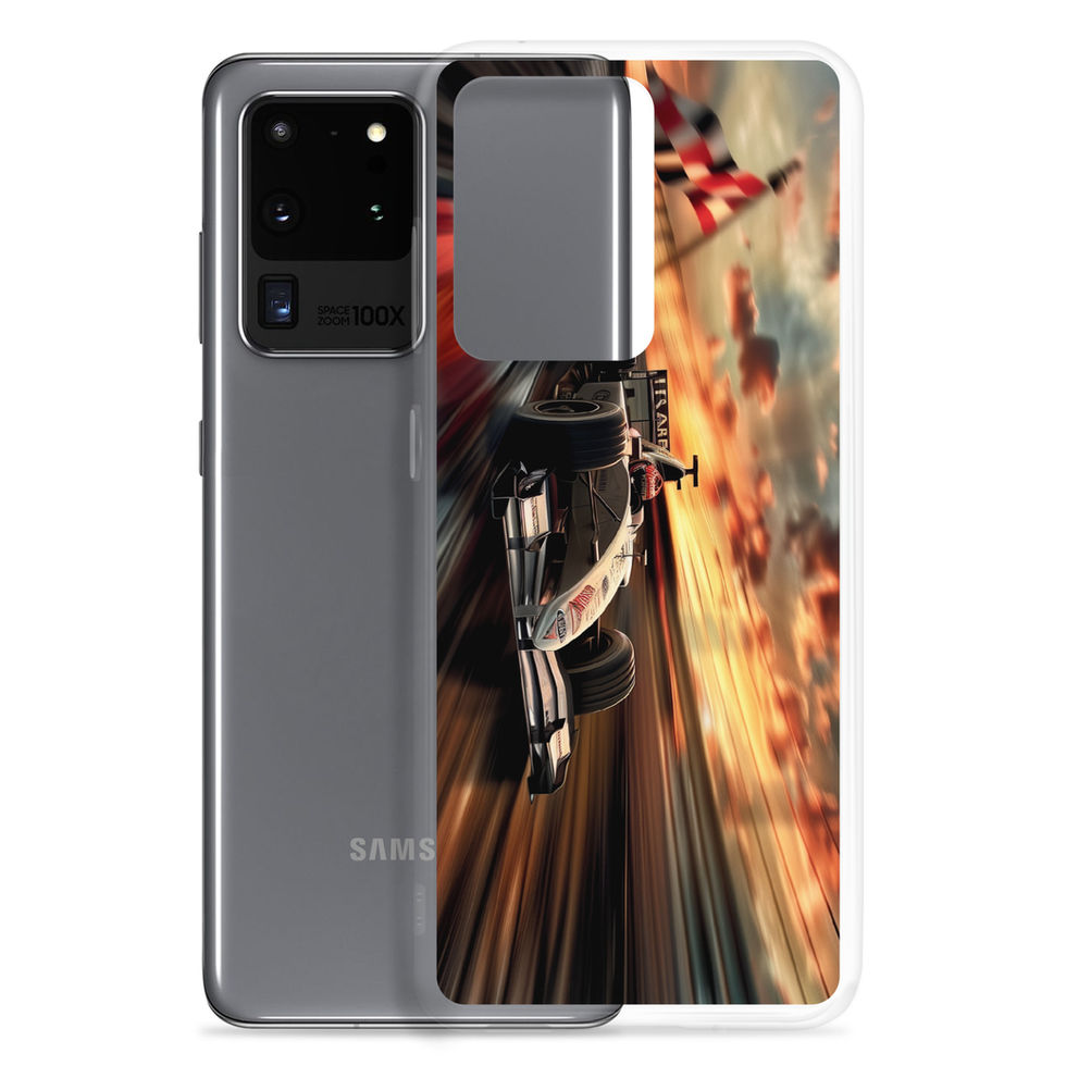 For those who love the beauty of racing at golden hour, the Sunset Speed Clear Case for Samsung® is the perfect choice. This transparent case captures an F1 car pushing towards victory under a dramatic sunset sky, with streaks of motion-enhanced red, orange, and black framing the scene. A sleek and lightweight design makes it ideal for motorsport fans who want to showcase their passion while keeping their phone protected. 🏁⚡