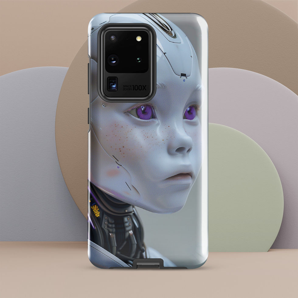 Protect your Samsung while carrying a glimpse of the future with "Synthetic Awakening". This artwork captures the delicate balance between AI perfection and human vulnerability. The robotic child�s metallic plating, intricate circuits, and glowing eyes are brought to life with stunning realism. Every detail�from the subtle facial textures to the neon-lit tech elements�represents a world where artificial intelligence takes its first steps toward sentience. ???