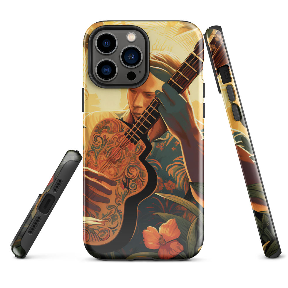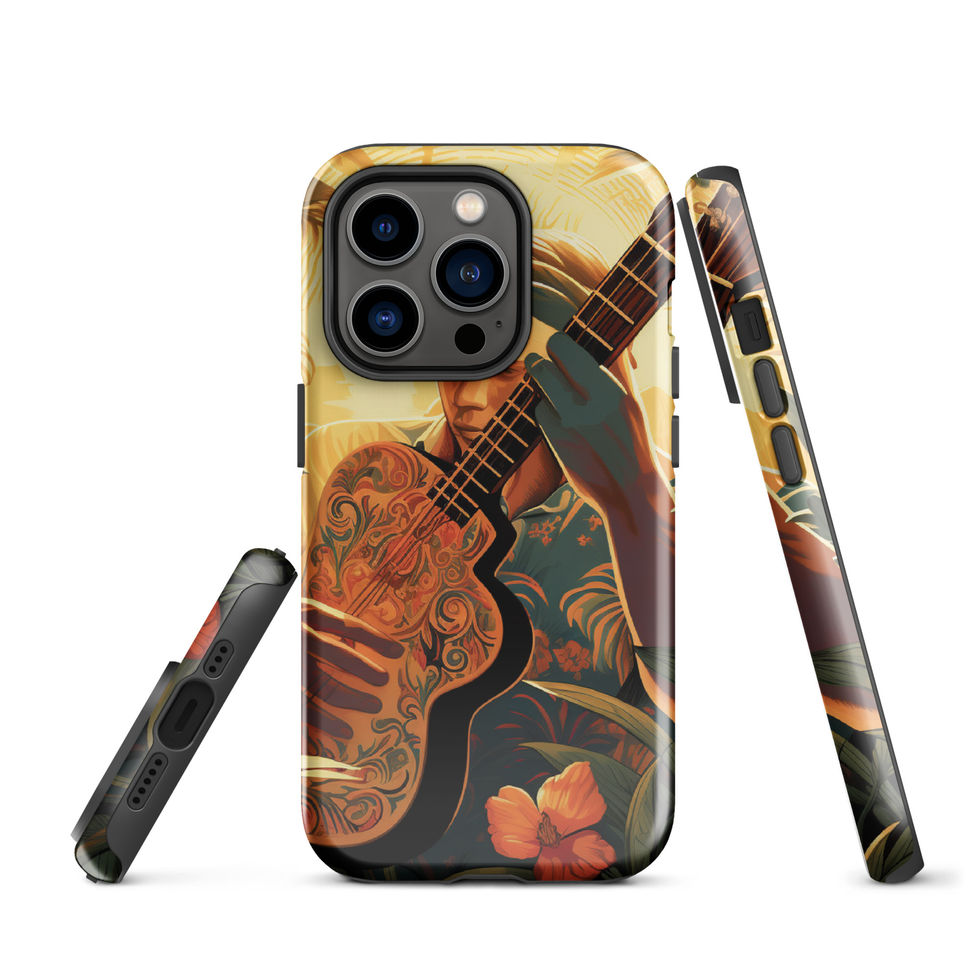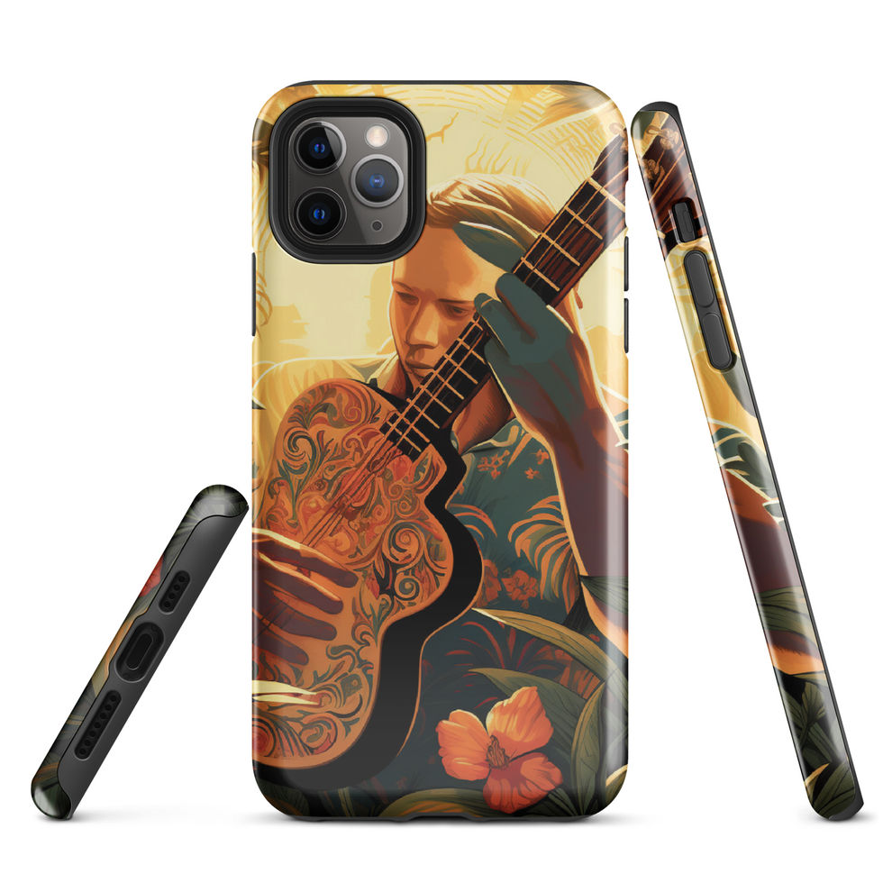 Immerse yourself in the soothing sounds of paradise with the Tropical Melody Tough Case! This breathtaking design features a guitarist lost in his music, surrounded by lush jungle foliage and glowing in the warmth of the sun. The ornate guitar, detailed floral patterns, and rich golden hues evoke a sense of peace, inspiration, and wanderlust. Perfect for dreamers, musicians, and nature lovers alike. 🌞🎵