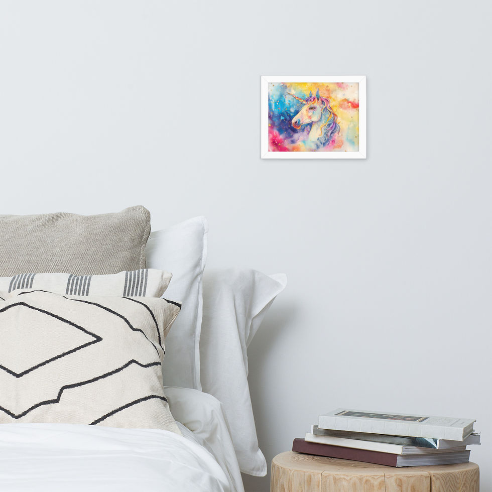 Step into a dreamy universe with "Unicorn Glow", a framed poster radiating joy, colour, and cosmic charm. This magical unicorn artwork lights up any space with its vibrant tones and stardust sparkle.