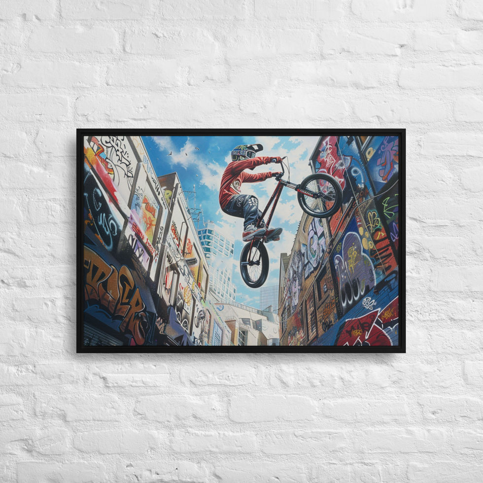 "Urban BMX Thrill" Framed Canvas 🚴♂️🖼️