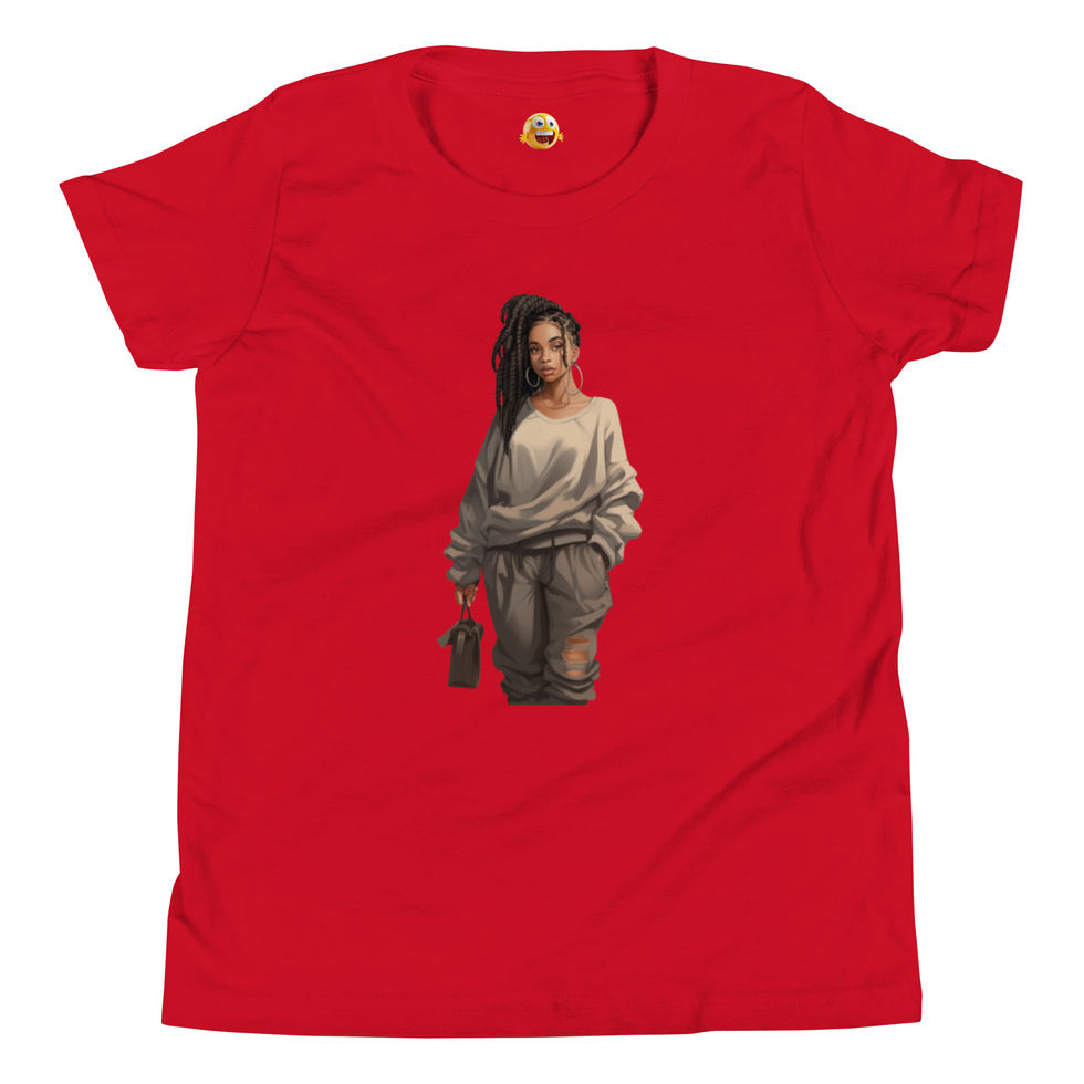 Featuring a captivating design of a girl dressed in grey ripped cargo trousers, a relaxed oversized top, and intricately braided hair, this tee encourages self-expression and confidence.