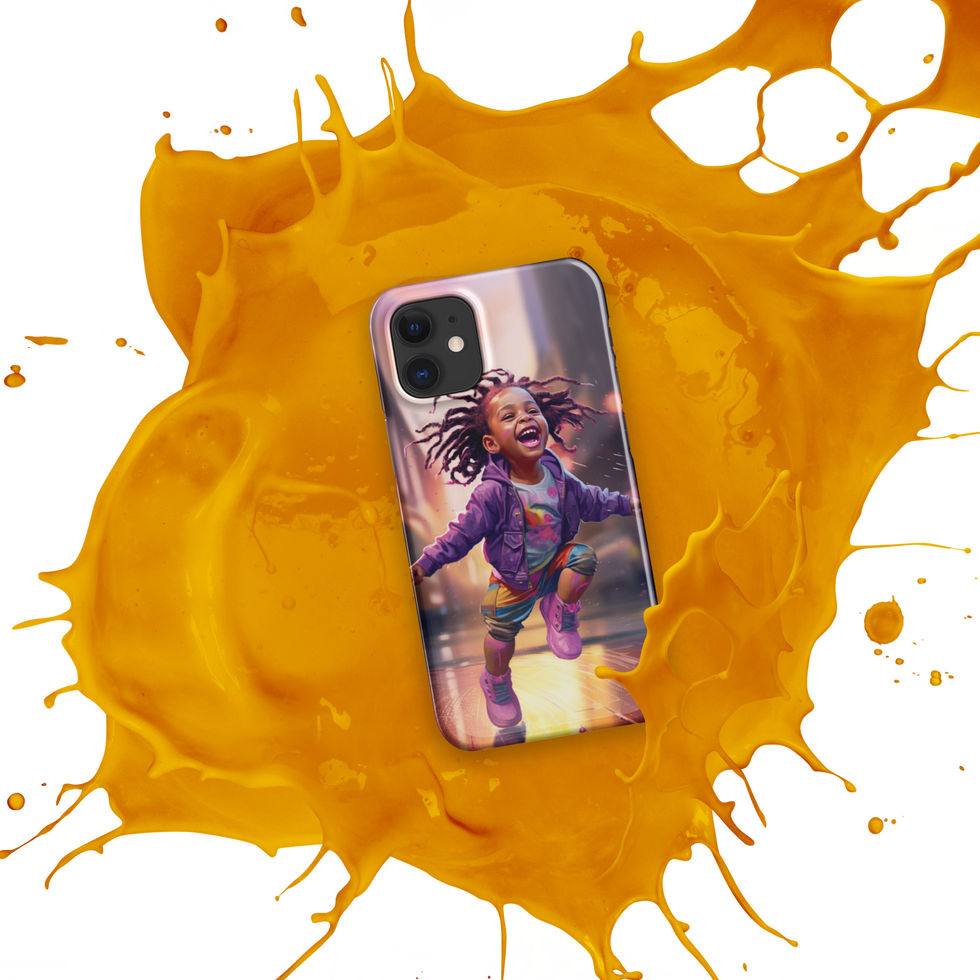 Step into a world of colour and movement with the "Urban Radiance" Snap Case. This captivating artwork captures the boundless energy of childhood, featuring a joyful child dashing through the city streets illuminated by neon reflections. With a sky painted in soft pinks and glowing city lights, this case radiates pure happiness and wonder. Perfect for those who love dynamic, artistic expression. 🌟🎨