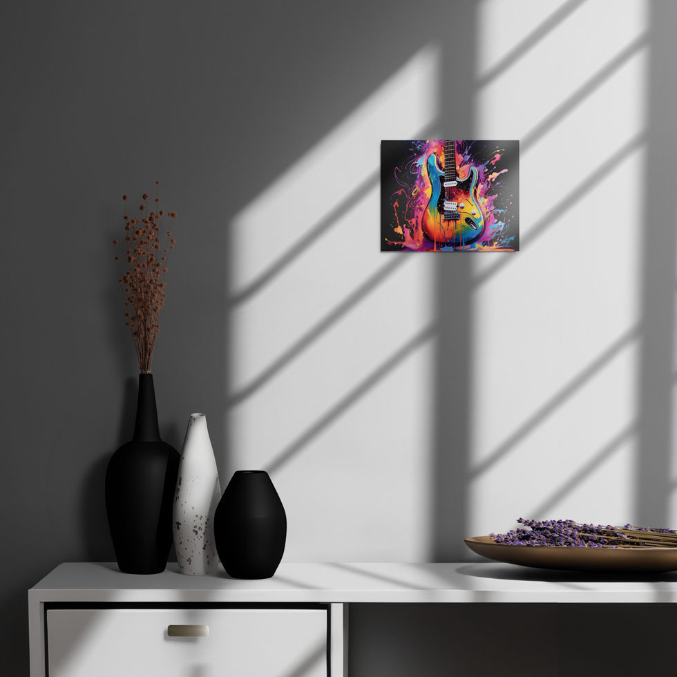 Transform your space with the Vibrant Strings Metal Print, an electrifying artwork featuring a bold electric guitar dripping in radiant colours. This high-energy design captures the essence of sound and movement, making it the perfect centrepiece for musicians, rock lovers, and artistic souls. Printed on sleek aluminium, this metal print offers a modern, high-impact look with stunning colour vibrancy and depth.
