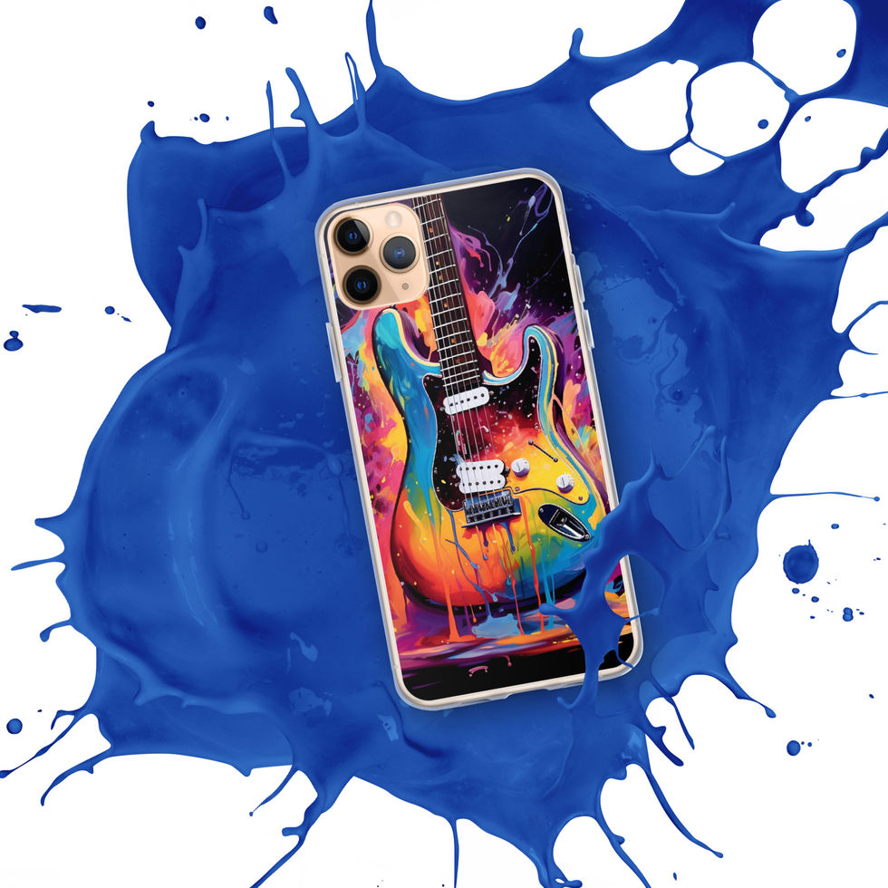 Show off your iPhone® with an electrifying touch of music and art! The Vibrant Strummer Clear Case features a sleek electric guitar infused with neon hues, surrounded by an explosion of splattered paint. The transparent design lets your phone's natural beauty shine while adding a bold, artistic statement. 🎶⚡