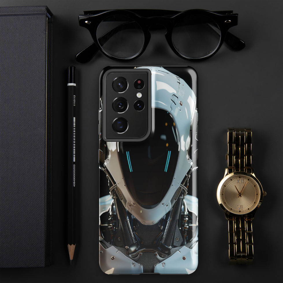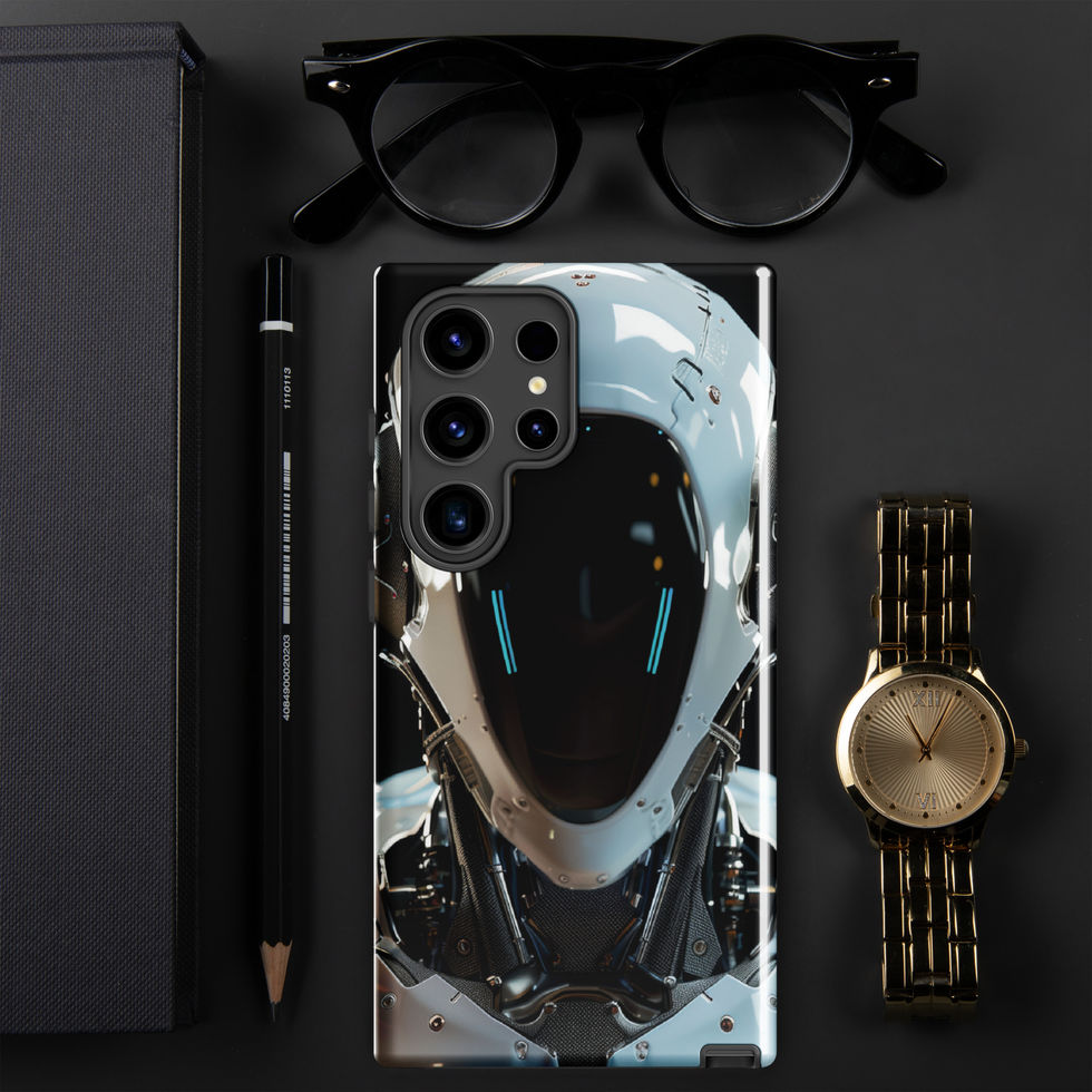 Reinforce your Samsung with "Void Sentinel", an elite fusion of technology and strength. This ultra-detailed design features a cybernetic AI enforcer, clad in a glossy white exoskeleton with reinforced plating, high-tech mesh, and a seamless black visor with glowing blue energy lines. Its faceless design adds an air of mystery, making this futuristic guardian feel like a force from another world. Designed for both resilience and style, this tough case is built to keep your Samsung as strong as the AI warrior it represents. ??????